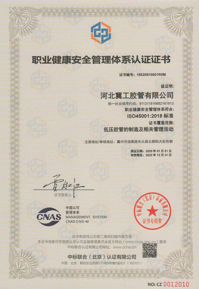 職業健康(kāng)安全管(guǎn)理體係認證證書